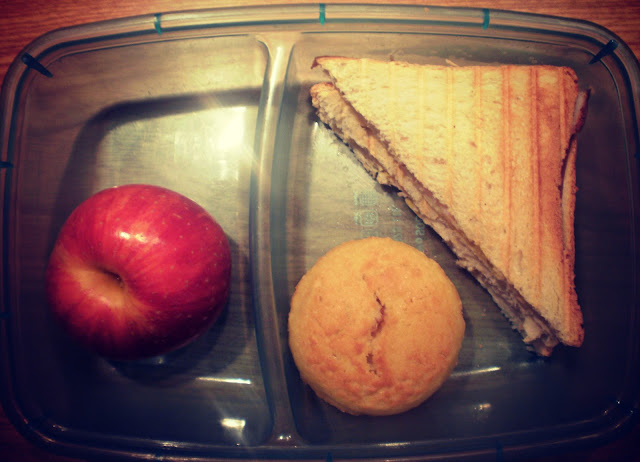 (sendvič, čokoladni mafin, zelena jabuka)