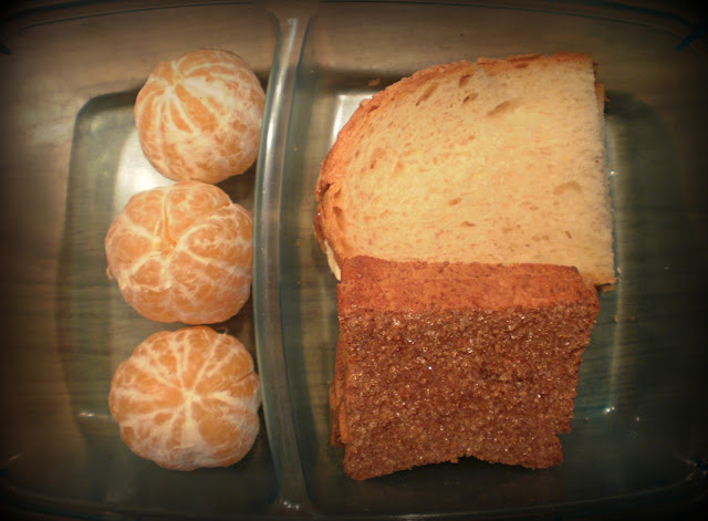 (posna užina: sendvič sa margarinom i džemom od integralnog domaćeg hleba, crna čokolada, pola jabuke i medenjak (melomakarona, recept možete pronaći ovde)
